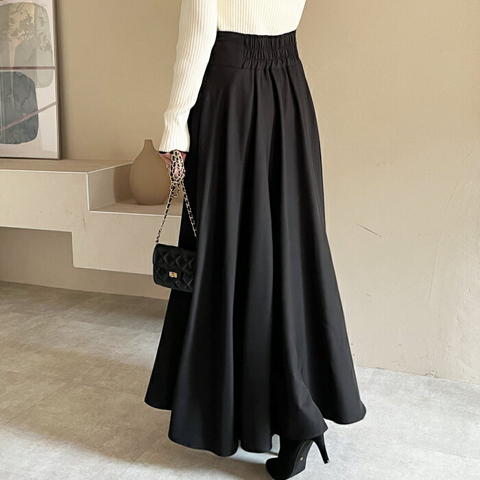 一枚で主役級のコーデに!ハイウエストフレアースカート〇フレアーシルエットで女性らしさをプラス〇ハイウエストデザインでスタイルUP効果も◎〇一枚でコーデが決まる主役級スカート■デザインウエストデザインが大人っぽいフレアースカート。ボリュームシルエットでフェミニンさを演出!絶妙なロング丈とハイウエストデザインで、美脚効果&腰回りのラインをカバーしてくれます!■素材滑らかな手触りの素材。ロングシーズン着ていただけます♪……………………透け感:なし(アイボリーのみややあり)厚さ:普通伸縮性:なし裏地:なし洗濯方法:洗濯機……………………■コーディネートリブニットやショート丈のトップスとの相性◎モノトーンと合わせてクラシカルなコーディネートもオススメです!■カラー:ブラック、アイボリーS:ウエスト64、ヒップ(ヌード寸)81〜86、総丈92M:ウエスト68、ヒップ(ヌード寸)86〜91、総丈94L:ウエスト72、ヒップ(ヌード寸)91〜97、総丈95LL:ウエスト78、ヒップ(ヌード寸)97〜103、総丈96※( )で表記されている数字はヌードサイズです。ヌードサイズとは衣服を身につけない身体のサイズです。お客様ご自身の身体サイズと比較してお選びください。 ■素材: ポリエステル95%、ポリウレタン5% ■お手入: 洗濯機 >>商品のお取り扱い方法 ■原産国:ハイウエストボリュームフレアースカート/ジーラ バイ リュリュ(GeeRA)ブラックアイボリー画面上と実物では、多少色具合が異なって見える場合がございます。