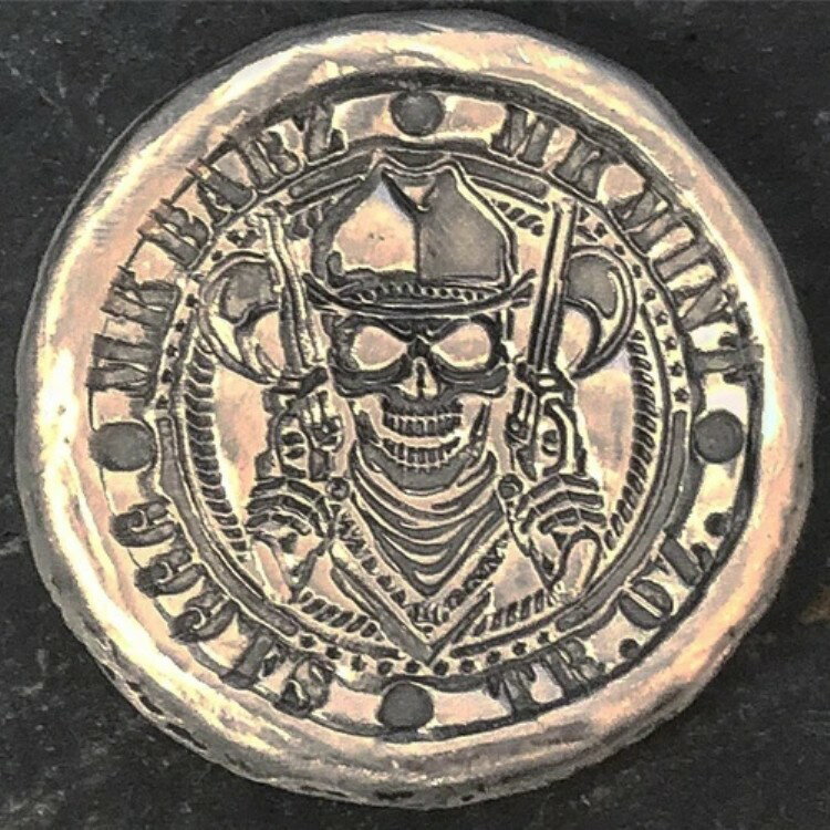 1トロイオンス .999 FS MK BarZ 刻印入り「二丁拳銃を振り回す頭蓋骨」Mk Barz MK ミント