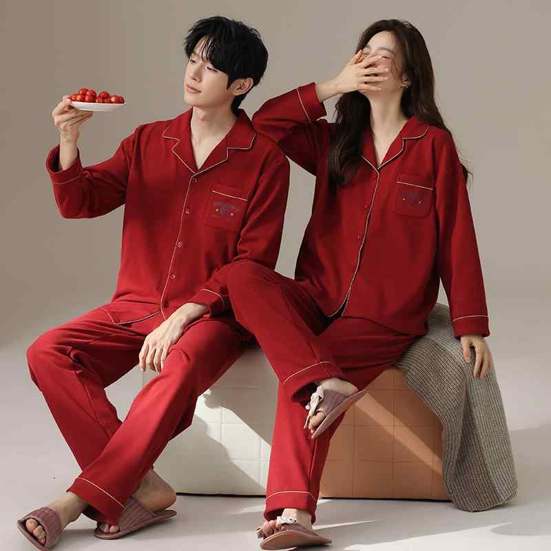 パジャマ メンズ レディース ペア 徳絨 厚手 保温 快適 ルームウェア 長袖 長パンツ 上下セット 新婚 結婚祝い 部屋着 カジュアル 赤 レッド 秋冬