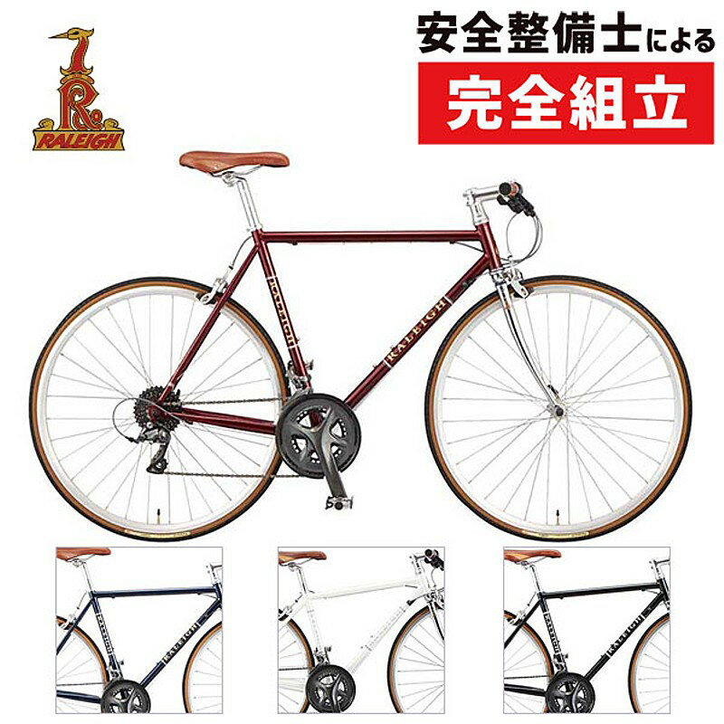 細身のクロモリフレームと美しくオールメッキされたフォークを採用。細身のクロモリフレームと美しくオールメッキされたフォークを採用し、ラレークラシックデザインでありながらもSHIMANO CLARISをフルセットで採用したロードに迫る快走感とスポーティーながらもクッション感もあるサドルで幅広い用途に使用できます。マッドガードなどオプションによるカスタマイズの可能性も嬉しい。スタンドは付属しません。Frame:Cr-Mo Mid-size D.B. TIG WeldingFork:Cr-Mo w/Investment-cast Crown CP FinishHead set:FSA INTELLASET 1-1/8”AHEAD w/5 10 10 15mm SpacersBB set:SHIMANO BB-RS500Handle:Bar KALLOY AL-003 Flat-bar 540mm φ31.8Handle Stem:KALLOY AS-007N -7° Flip-Flop 80mm(440) / 100mm(480 520 550)Bar-tape/Grips:Brown PVC-Leather Lace-up w/Alloy ringsShifter:SHIMANO CLARIS 8×2 speed Rapidfire-PlusRear Derailleur:SHIMANO CLARIS SSFront Derailleur:SHIMANO CLARIS 28.6mmChainwheel:SHIMANO CLARIS 50-34T w/Gear-guard ×165mm(440) / 170mm(480 520550)Gear:SHIMANO CS-HG31 11-32T 8speedChain:SHIMANO CN-HG40Pedals:WELLGO LU-908 Road CompactBrakes:SHIMANO BR-R451 Caliper brakeLevers:SHIMANO CLARIS for Flat-bar RoadHubs:SHIMANO CLARIS 32H 100×130mmSpokes:14G StainlessRims:SHINING RIMS A-220 700C SILVER 32HTires:PANARACER TOURER PLUS 700×25C F/VSaddle:VELO Classic-Sport RALEIGH-specSeat Pillar:KALLOY SP-373 27.2×300mmWeight:11.5kg(440mm)防犯登録について通信販売にて防犯登録を行うことは禁止されている為、お受けすることができません。自転車の到着後、保証書、身分証明書等をお持ちの上、お近くの自転車防犯登録所(自転車販売店等)にてご自身で手続き(有料)をお願いいたします。 商品のカラー・サイズについて商品のカラーはディスプレイの種類等により、実物と異なって見える場合がございます。掲載商品の仕様、ロゴ等のデザインは改良のため、変更される場合がございます。また、メーカーが発表していない寸法や個人的なフィット感についてはお答えいたしかねます。あらかじめご了承ください。※完成車の送料について※完成車の沖縄・離島地域への発送には、表示送料に追加で送料が必要です。(送料無料と表示がある場合でも別途必要です)※組立整備が必要な商品の為、ご注文から出荷までに7〜10営業日ほどお時間を頂戴しております。 ※ご指定日を入力いただいても、ご要望にお応えできない場合がございます。※完成車の発送について ※完成車の沖縄・離島地域への発送には、表示送料に追加で送料が必要です。 ワールドサイクルで完成車を購入する場合、下記動画を参考に組み立てを行ってください。前後輪とシートポストの取り付け作業が必要となります。取り付けに自信のない場合は、リアル店舗でのご購入をおすすめいたします。生産工程における塗装ムラや小さな傷などがある場合がございます。そういった理由での返品・交換はお受けできません。