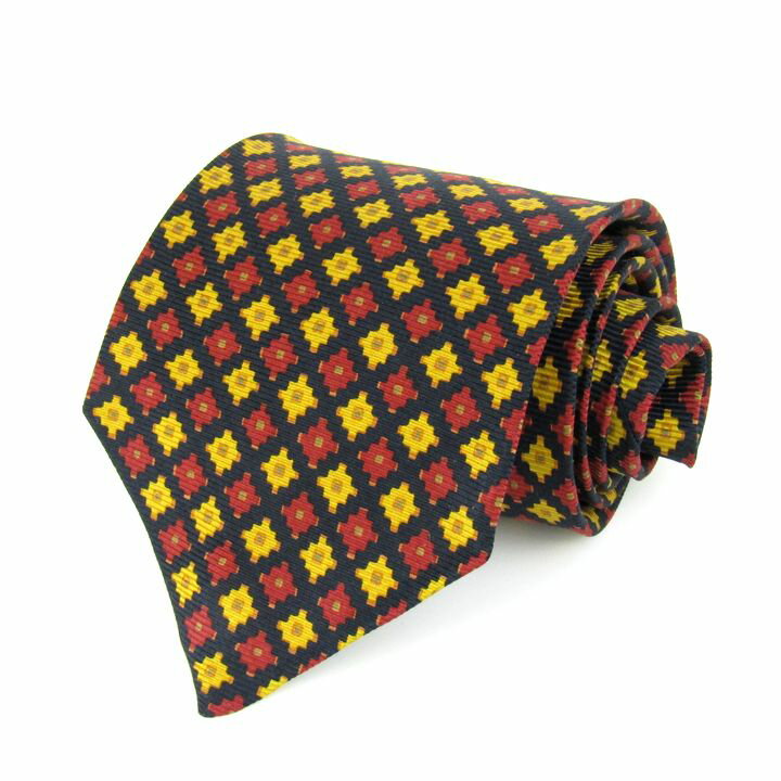 【全品39%OFFクーポン配布中】ラファエロネラ ネクタイ ブランド ワイドタイ 総柄 シルク イタリア生地 日本製 未使用品 メンズ ネイビー RAFFAELLO NERA 【中古】