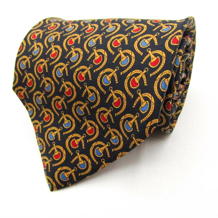 ラファエロ ブランド ネクタイ 総柄 馬具 シルク イタリア製 PO メンズ ネイビー RAFFAELLO 【中古】