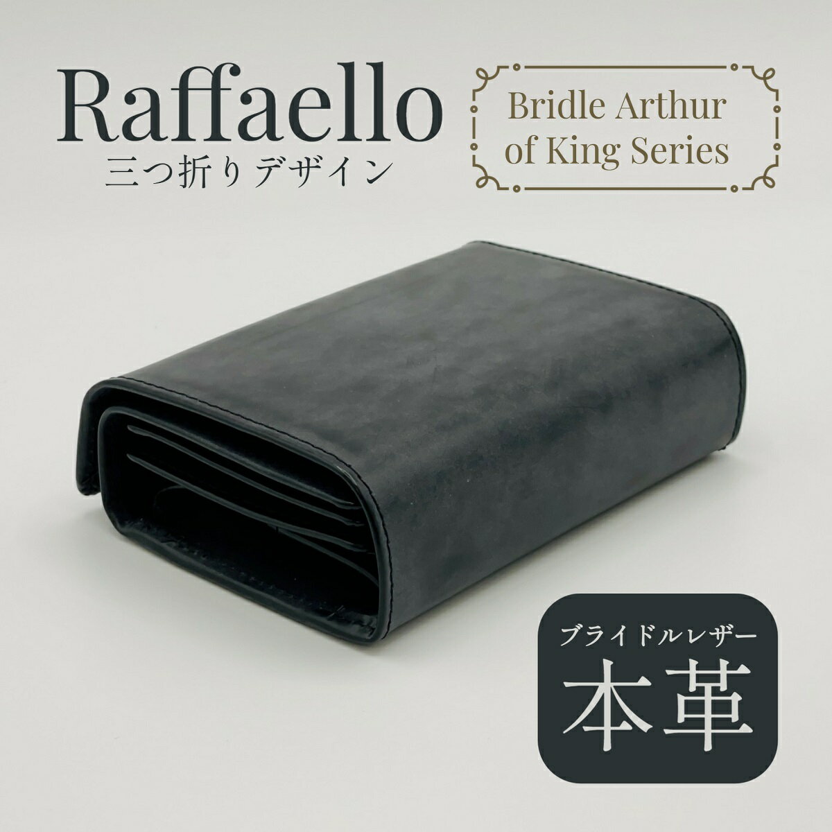 【あす楽】【在庫限り】Raffaello ラファエロ 三つ折り財布 革職人 本革 ブライドルレザー ブラック