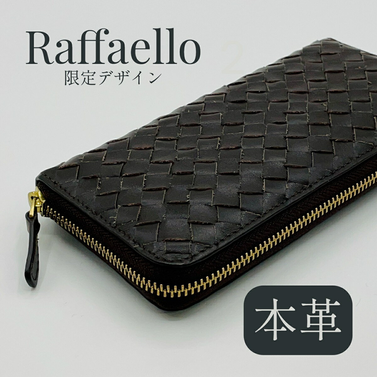 【あす楽】【在庫限り】Raffaello ラファエロ 限定デザイン 長財布 革職人 本革 編み込みレザー ラウンドファスナー ブラウン