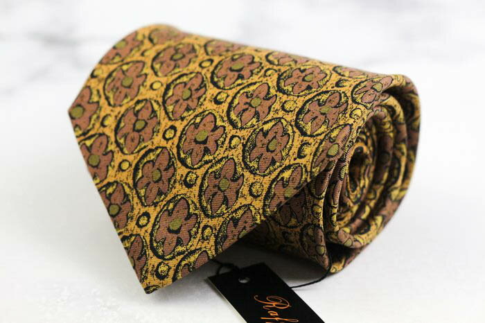 ラファエロ ブランド ネクタイ 総柄 花柄 ドット シルク 日本製 未使用タグ付 PO メンズ イエロー RAFFAELLO 【中古】