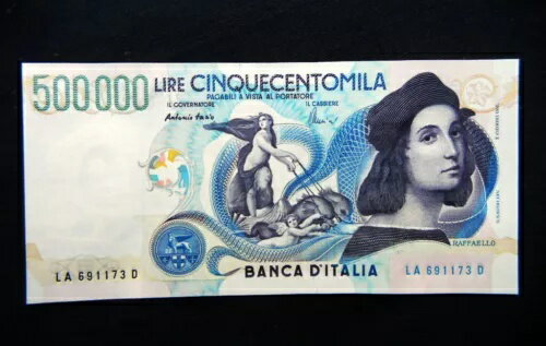 1997 イタリア レア紙幣 500000 リラ RAFFAELLO UNC 品質 CONSECUTIVE シリーズ LAD