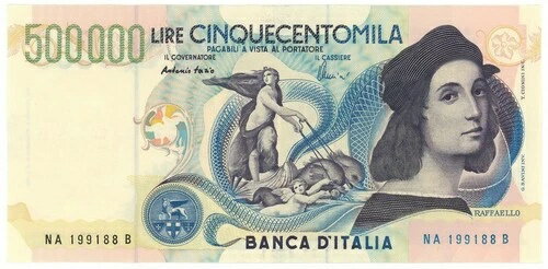 500000 リラ BANCA D'ITALIA RAFFAELLO LETTERA A 13/05/1997 SPL/SPL+