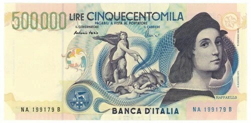 1997年 イタリア 希少紙幣 500000 リラ RAFFAELLO UNC GEM 高品質 CONSEUTIVE