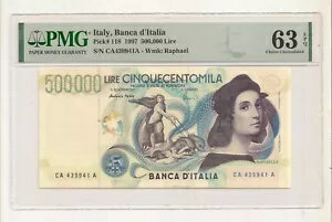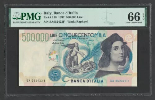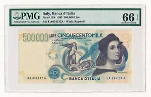 イタリア 500,000 リラ 1997 P. 118 PMG 66 Gem Unc EPQ - 希少ノート ラファエロ