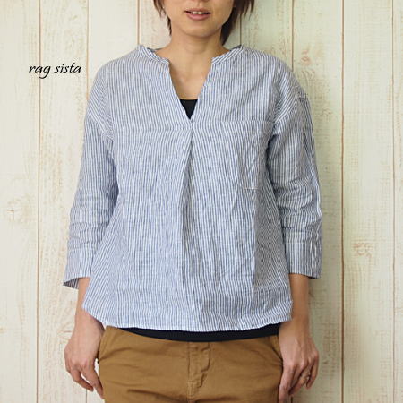 Rag sista(ラグシスタ) 80/フレンチリネン スキッパーシャツ