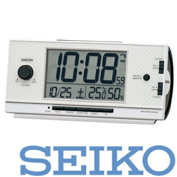 セイコー NR523W 目覚まし時計 【SUPER RAIDEN(スーパーライデン)】 白パール NR523W [デジタル /電波自動受信機能有]