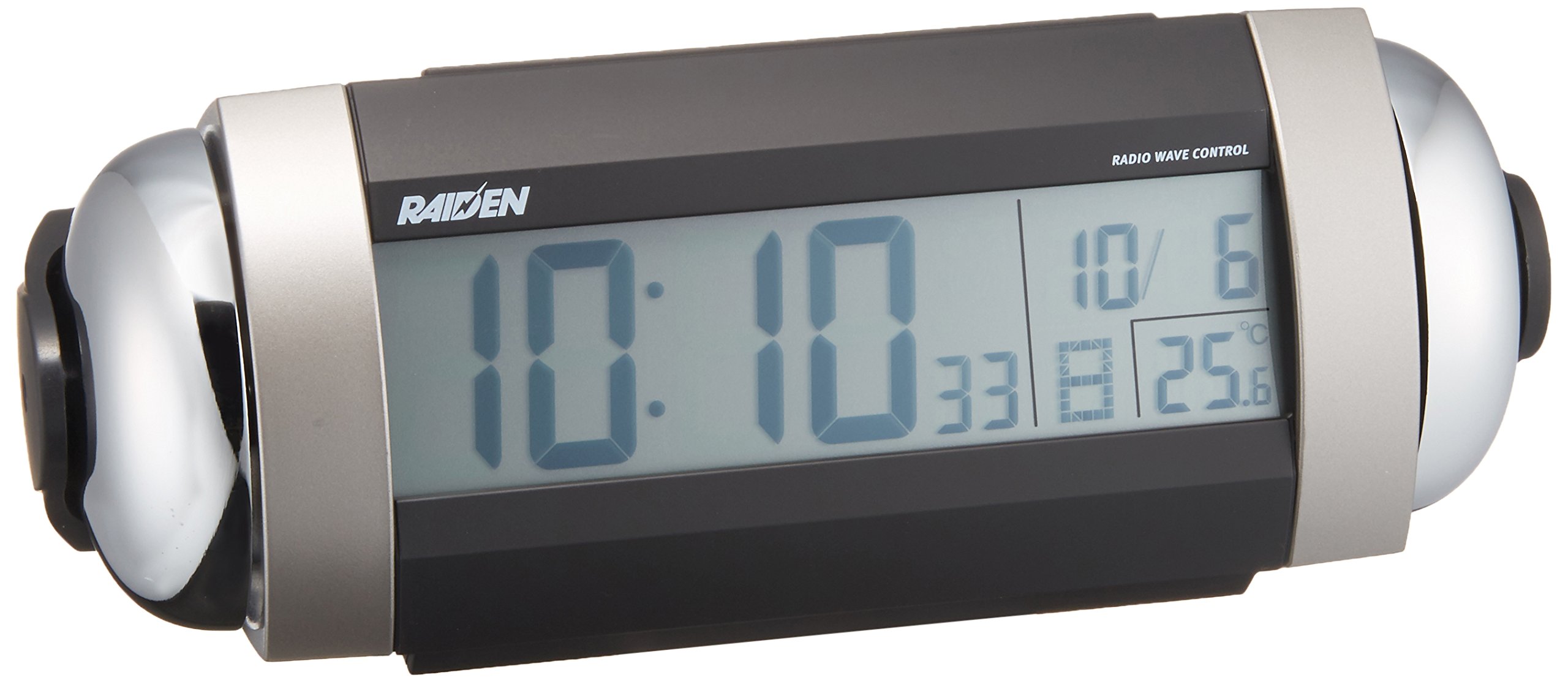 本体サイズ:9.8×22.2.×12.5cm 0.76 素材・材質:プラスチック枠(黒メタリック塗装) 原産国:中国 ムーブメント:電波修正機能(40kHz/60kHz自動選局)/電波OFF機能つき 付属品:電池(単3アルカリ×4) ベル音、スヌーズ、音量切替、ライト、フルオートカレンダー 温度表示、湿度表示、アラームモニター、アラームオートストップ約5分間 ※ウルトラスーパーライデンキャンペーン対象商品 キャンペーン期間:2016年3月1日~16年5月10日