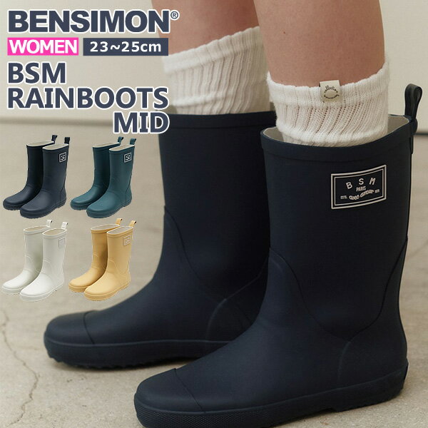 【30%OFF→6286円!クーポンで!】レインブーツ ベンシモン 長靴 レディース ブーツ ミドル ハーフ 防水 雨 雪 レインシューズ 靴 雨靴 おしゃれ 台風対策 梅雨対策 BENSIMON BSM RAIN BOOTS MID ^BS3SRB101 bsm007^