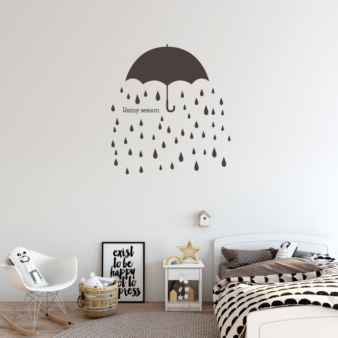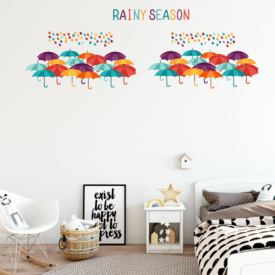 3sizeから選べる!梅雨☆シール式ウォールステッカー 雨 rainy day rainy season 傘 カラフル 飾り 装飾 おしゃれ 壁紙 剥がせる DIY プチリフォーム パーティ 賃貸 190×427mm 390×877mm 590×1327mm Ssize Msize Lsize 016351