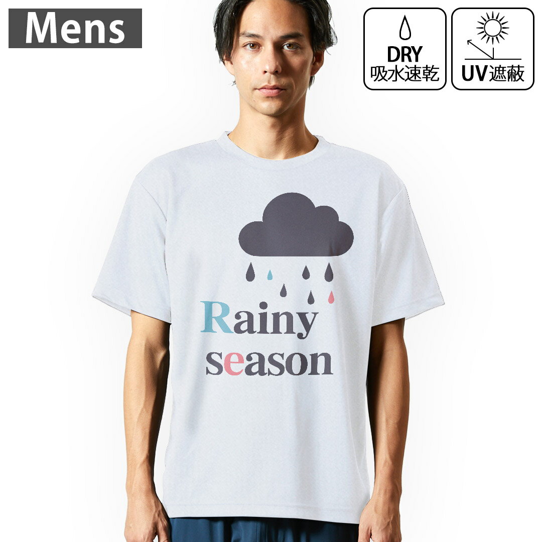 メンズ ドライTシャツ ホワイト 半袖 4.1オンス ジム トレーニング スポーツ 運動会 ドライアスレチック UVカット 紫外線遮蔽 吸水速乾 デザイン Tshirt S M L XL 2XL 3XL 4XL 5XL 6XL 017799 梅雨 雲 風船 rainy season