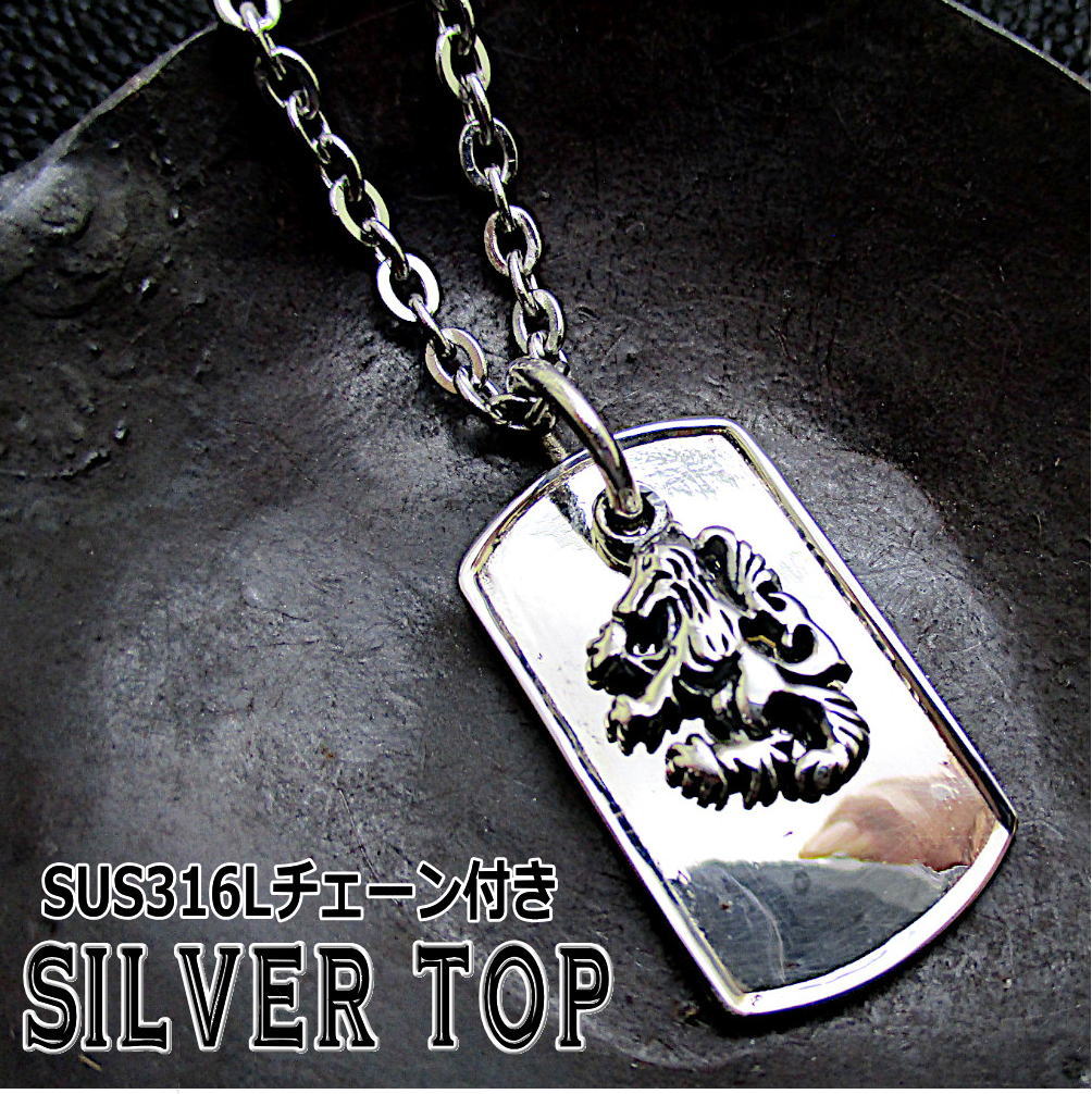 ドッグタグ シルバー 925 銀製品 銀 トップ と ステンレス製チェーン ランパント ライオン 獅子 メンズネックレス ウルフ 狼 ペンダント ネックレス t032