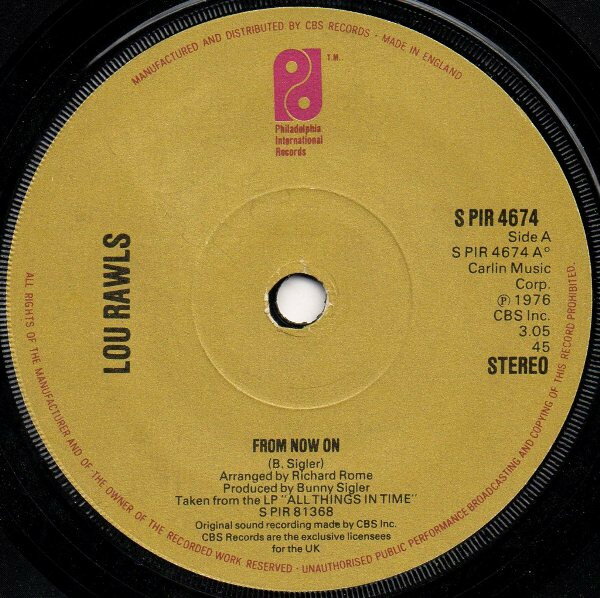 【中古】英7” Lou Rawls From Now On SPIR4674 Philadelphia Interna /00080