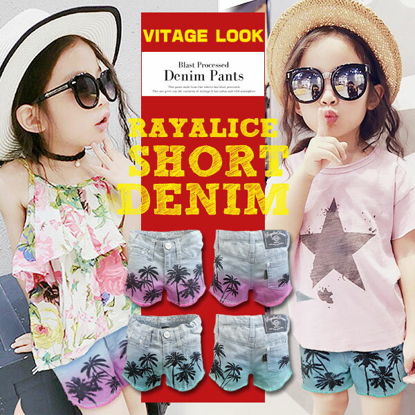 期間限定!店内ほぼ全品送料無料! RAYALICE レイアリス ヤシの木 グラデーション キッズ デニム ショートパンツ ボトムス パンツ ズボン 短パン ジーンズ 夏 女の子 可愛い おしゃれ 子ども服 子供服 幼稚園 小学生 中学生 韓国子供服 ファッション 110 120 130 140 150 160