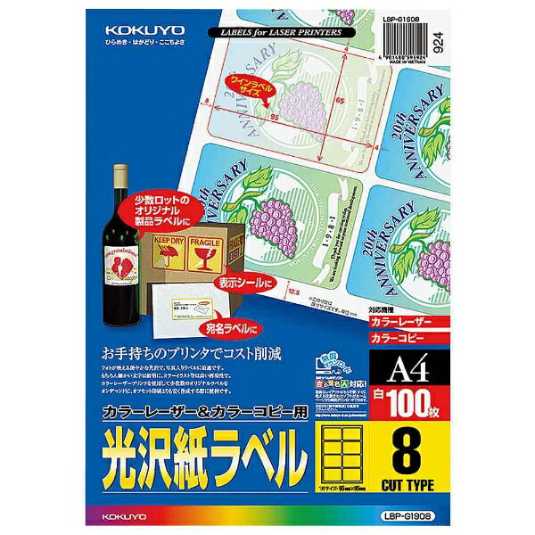 KOKUYO|コクヨ 〔レーザー・コピー〕光沢紙ラベル (65x95x0.11mm) LBP-G1908 [A4 /100シート /8面 /光沢][LBPG1908]