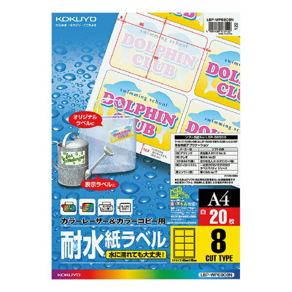 コクヨ ラベル用紙 A4 耐水紙 カラーレーザー用 ラベル 8面 65×95mm 20枚 LBP-WP6908N KOKUYO