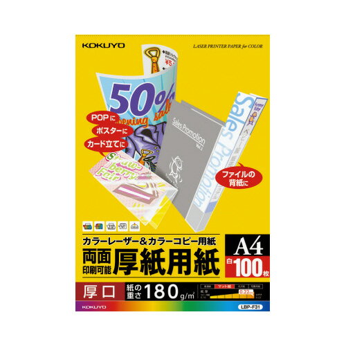 コクヨ KOKUYO カラーレーザー&カラーコピー用紙 両面印刷用厚紙 100枚 A4 LBP-F31