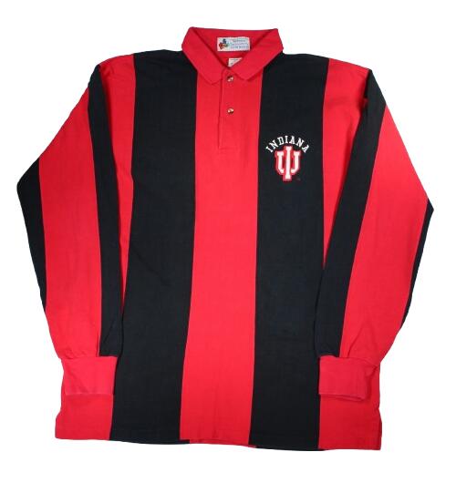 USED!!! MIDWEST EMBROIDERY / "INDIANA UNIVERSITY" LS POLO SHIRTS (90'S) / red×black