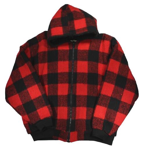 USED!!! MELTON / BUFFALO PLAID WOOL HOODIE JACKET (80'S) / red×black メルトン バッファローチェック ウール・フーディージャケット