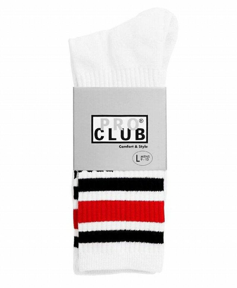 PRO CLUB / STRIPE CREW SOCK / white×red×black プロクラブ ラインソックス