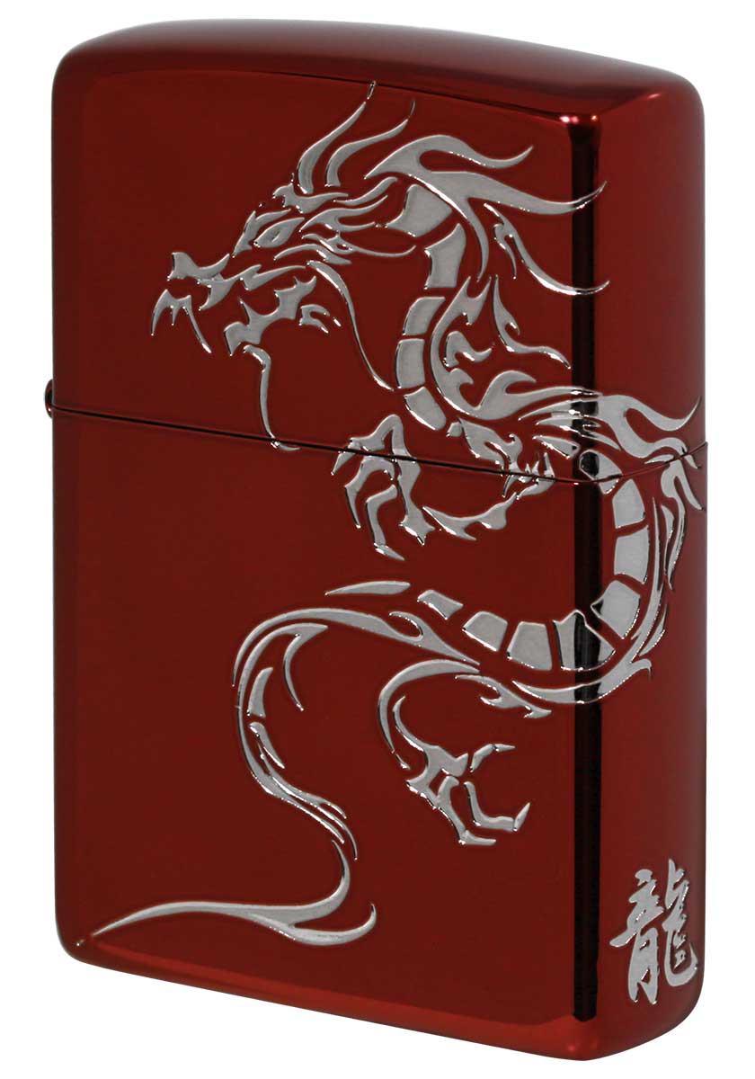 Zippo ジッポー 龍 ドラゴン 2面連続加工 レッドイオンコーティング 銀サシ Tiger & Dragon 2REDS-DR プレゼント 贈り物 男性 かっこいい オプション購入で名入れ可