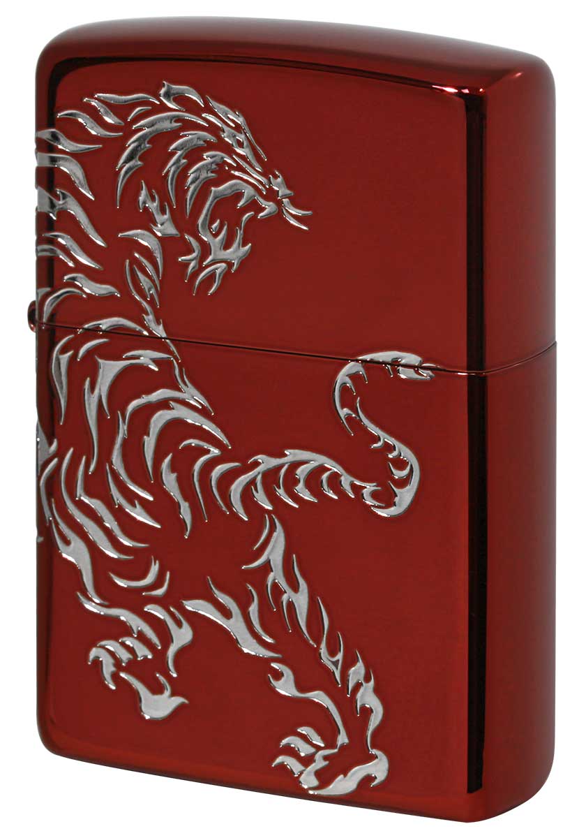 ギフト対応 商品説明 ★存在感際立つイオンレッドのボディに銀色の龍が映える商品です。 2面に渡り虎が施されており大変人気のデザインです。 主な特長 ●ZIPPOレギュラーサイズベース ●レッドイオンコーティング、エッチング、銀サシ仕上げ、2面連続加工 ●底面の刻印は異なる場合がございます。 ●保証書・箱 備考