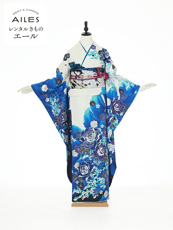 【レンタル】振袖レンタル フルセット(2月〜11月)AC0054 白地 バラ 青 結婚式 結納 レンタル 貸衣裳 袋帯 草履 バック かわいい 人気 振袖 レンタル rental ふりそで 女性和服 フリソデ furisode 着物 きもの 新品足袋プレゼント 送料無料