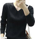 ニット リブニット レディース きれいめ セーター トップス 長袖 タイト Vネック 薄手 無地(ブラック, M)