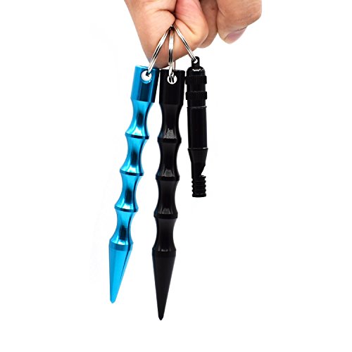 【送料無料】Riao-Tech 護身用 クボタン 護身棒 タクティカルスティック キーホルダー 痴漢対策 武器 防犯 護身グッズ 軽量 (ブラック+ブルー)
