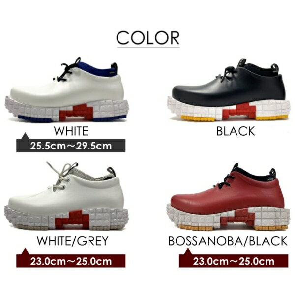 ・晴れの日も雨の日も「歩く」を楽しく!ccilu(チル)の 「PANTOO RIAO/RIOO」・ブロックを組み合わせた立体感のあるソールがインパクト抜群。・ソールの素材に、cciluが独自開発した合成樹脂ccilucell(チルセル)を使用し、歩行時の衝撃を効果的に吸収。・ccilucellは高い抗菌・防臭機能も併せ持っているため、いつも衛生的。・ユニークなブロックソールは厚さ4.5cmのヒールで脚長効果にも期待◎・耐水性に優れたアッパーで、雨の日もアクティブに。・インナーはサラっと快適なウェットスーツ素材。・かかとのプルストラップで、脱ぎ履きがとってもスムーズ。・クッション性に優れた快適な履き心地が持続し、長時間履いても疲れにくい!・レインシューズとしてはもちろん、晴れの日もお洒落に履きこなせる遊び心あふれるデザイン。・23cmから28.5cmまで、幅広くサイズを取り揃えたユニセックス仕様。・「ccilu(チル)」とは・・・アマゾンの奥地で「緑の勝利」を意味する言葉。アマゾンで暮らす人たちが履いている草のサンダルから着想を得て造られた、素足の感覚に限りなく近づけた新感覚シューズ。【素材】[本体]ccilucell(合成樹脂)[インナー]SBR、ナイロン[インソール]PU、ポリエステル[ソール]ccilucell(合成樹脂)、ラバー【生産国】中国【サイズ】[ユニセックス]・23cm・24cm・25cm・25.5cm・26.5cm・27.5cm・28.5cm※実際の商品とは多少の誤差が生じる場合がございます。あらかじめご了承ください。【重量】約673g(※25.5cmサイズの重量です。)【注意点】※エスカレーター・自動ドア・回転ドア等の設備に巻き込まれる恐れがあります。十分にご注意ください。※滑りやすい所での使用は、お控えください。また靴底の意匠がすり減ると滑りやすくなる場合があります。十分にご注意ください。※火のそば・車中・直射日光が当たる場所、高温となる場所に放置すると変形・軟化・変色する場合があります。風通しの良い場所に保管してください。※天然素材・起毛素材・布を使用している製品は、汗・雨摩擦により色が落ちる恐れがあります。※プリントやヴェルヴェット加工を施している製品は摩擦や水洗いを繰り返すと加工が薄くなったり剥げ落ちる原因となります。また汗や水など濡れた状態で放置すると、色移り・色落ちする原因となります。※製品に使用している素材の一部は、使用回数に関わらず経年劣化を生じ破損する場合があります。※かぶれ・かゆみなど足に異常が生じた場合は、ご使用をやめてください。[エスカレーターの安全利用に関するお願い]※エスカレーターをご利用の際は、必ず黄色い線の内側にお乗り下さい。黄色い線に足を踏み入れないよう、ご注意下さい。※カメラやモニターの性質により、画像と実物の色の違いがある場合がございますのでご理解願います。【キーワード】メンズ レディース ショート 軽量 晴雨兼用 厚底 雨靴 レインシューズ レインブーツ ダッドスニーカー スニーカー カジュアルシューズ 疲れにくい カジュアル レイン 雨 雪 おしゃれ かっこいい返品・交換について購入後の交換は受け付けておりません。予めご了承ください。返品を希望される場合は購入履歴一覧の「ショップへの問い合わせ」よりお問い合わせください。=========================複数配送先指定について1件の注文に対して、異なる住所への配送は対応出来かねます。恐れ入りますが、異なる住所へ配送をご希望の場合、配送先毎に分けて注文いただきますようお願い申し上げます。【シューズ・靴WOMEN】23cm 24cm 25cm 25.5cm 26.5cm 27.5cm 28.5cm BLACK/Z.WHITE Z.WHITE BOSSA.NOVA/SPACE.GREY Z.WHITE/S.BLUE ZERO.WHITE/BLACK