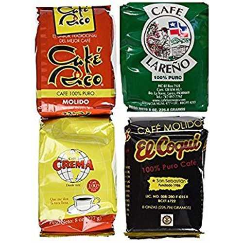プエルトリコ バラエティ パック グラウンド コーヒー - 地元の人気 4 種類 8 オンス袋入り (ラレノ、リコ、コキ、クレマ) Lareno Rico Crema El Coqui Puerto Rican Variety Pack Ground Coffee - 4 Local Favorites in 8 Ounce Bags (La