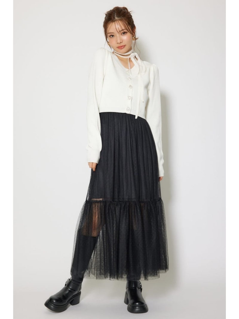 ニットカーディガンセットドットチュールフレアワンピース rienda リエンダ ワンピース・ドレス ワンピース レッド ブラック ホワイト【送料無料】[Rakuten Fashion]