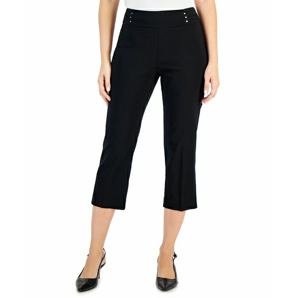 ジェイエムコレクション レディース カジュアルパンツ ボトムス Women's Pull On Slim-Fit Rivet Detail Cropped Pants, Created for Macy's Deep Black