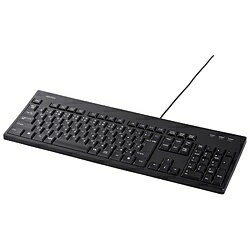 〔Windows8.1対応 メンブレン(フルサイズ):USB・108キー・Win〕汚れても丸洗いできるお手入れ簡単USB接続キーボード。(ブラック)■ 汚れても丸ごと洗えるからお手入れ簡単本体背面に水抜き穴があり、流水(水温50℃以下)での丸洗いが可能。長時間使用による隙間のホコリや、飲食をしながら操作し溜まってしまった食べカスも掃除でき、清潔を保つことの出来るキーボードです。※汚れが固まる前に洗い流してください。※丸洗いの際は、USB端子を水につけないようご注意ください。※丸洗いの際は、洗剤、研磨剤をご使用にならないでください。※丸洗い後、8時間以上の自然乾燥をさせてからご使用ください。※乾燥後も排水口から水滴がこぼれる可能性があります。■ レーザー刻印で長期間使っても文字が消えにくいキートップの印字には、耐久性にすぐれたレーザー刻印を採用。文字が消えにくいため、長期間にわたって使用できます。■ 使い勝手の良いフルキーボードキー数108キー、キーピッチ19mm、キーストローク3.5mmと、タイピングしやすく使い勝手の良いスタンダードフルキーボードです。■ 角度調整スタンド装備入力しやすい角度に調整でき、入力時の疲労を大幅に軽減します。■ キーにはメンブレン方式を採用。打鍵音も静か入力方式はしっかりとキーが押せ、さらに打鍵音が静かなメンブレンを採用。■ ドライバー不要!USBで簡単接続USBポートに挿し込むだけの簡単接続。ドライバーインストール不要、面倒な設定なしでお使いいただけます。■ 特定有害物質使用制限指令「RoHS指令」に準拠2006年7月からEU圏で施行された電子機器に対する特定有害物質使用制限指令「RoHS指令」に準拠しています。※PS5で使用する場合、3つ以上のマウス、キーボードを同時に接続すると動作しないことがあります。使用するゲーム、アプリによって操作できないキーがあることがあります。サイズ(H×W×D)mm約21×445×151mmケーブル長(m)1.5本体重量560gキー数108対応機種USBインターフェースを標準搭載したDOS/V(OADG仕様)対応OSWindows 8.1(64・32ビット)、8(64・32ビット)、RT、7(64・32ビット)、Vista、XP接続方法有線インターフェースUSBキー配列日本語配列テンキーテンキーありキータイプメンブレンキーストローク3.5mmキーピッチ(mm)19mm付属品本体、クリーニングブラシ、取扱説明書、保証書(取扱説明書に記載)仕様2キー仕様:キー入力方式:メンブレン、キーピッチ:19mm、キーストローク:3.5mm〔Windows8.1対応 メンブレン(フルサイズ):USB・108キー・Win〕 汚れても丸洗いできるお手入れ簡単USB接続キーボード。(ブラック)