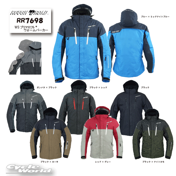 ◆RR7698 WSプリマロフト?ウォームパーカー◆米軍用に開発された高機能中綿プリマロフト?を採用過酷な環境下でも対応できる、防寒・防水・透湿仕様のスペシャルウインターパーカー ウインターパーカーにプリマロフト?インナージャケットをインサートした、厳冬期寒風をものともしない、防風・防水・透湿、超防寒仕様で、ツーリングシーンを暖かくサポートします。プリマロフトは米国のAlBany社により、米軍向けの中綿素材として開発された、超軽量最高の保温性能、撥水性、イージーメンテナンス性を兼ね備えた超微細マイクロファイバー素材で、過酷な環境でも使える画期的な人工中綿です。ロング・ショートツーリングはもちろん、名所、旧跡等も躊躇なく行けるさりげないデザイン。また、ベンチレーション装備のため、インナージャケットを外して3シーズンジャケットとして秋冬春と長期間活躍します。付属のインナージャケットはシンプルなデザインで単体着用も可能です。品番: RR7698品名: WSプリマロフト?ウォームパーカーMen's COLOR: ブラック×カーキ、ブラック×ナイトカモ、ブラック×レッド、ブルー×ミッドナイトブルー、ガンメタ×ブラック、レッド×グレーMen's SIZE: M、L、LL、XLWomen's COLOR: ブラック×カーキ、ブラック×ナイトカモ、ブラック×レッド、ブルー×ミッドナイトブルー、レッド×グレーWomen's SIZE: WM、WLMATERIAL:表地/ナイロン(タッサー)裏地/ナイロン、TPUボンディング(タフタウォーターシールド加工)※ブルー×ミッドナイトブルー、レッド×グレーのみ 表地/ポリエステルインナー/表地/ナイロン(タフタ)、裏地/ナイロン中綿/ポリエステル(プリマロフト)PROTECTOR: 肩・肘・脊椎パッド 標準装備 (胸パッドはオプション)INNER: プリマロフト?インナージャケット 標準装備-----------------------------------------------------------------------------------------------------※ブラウザやお使いのモニター環境により、掲載画像と実際の商品の色味が若干異なる場合があります。商品詳細画像は今シーズン展開外カラーを掲載していることがあります。掲載の価格・デザイン・仕様について、予告なく変更することがあります。あらかじめご了承ください。商品の詳細に関しましてはメーカーサイトをご確認頂ますようお願い致します。★送料・納期などの注意点につきましては必ず弊社会社概要ページの「ショップからの重要なご案内」をお読みいただき注文をお願いいたします。-----------------------------------------------------------------------------------------------------