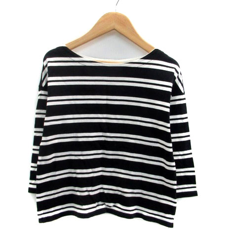 【中古】デンドロビウム DENDROBIUM カットソー ラウンドネック 長袖 ボーダー柄 38 黒 ブラック オフホワイト /HO43 レディース 【ベクトル 古着】 230829