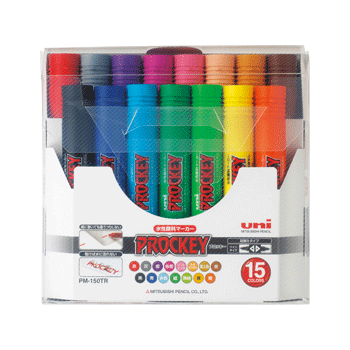 【15色セット・細字丸芯+太字角芯】三菱鉛筆/プロッキー PROCKEY (PM-150TR15CN) (PM150TR15CN)鮮やかに発色!にじみが少なく裏うつりしない水性マーカー。 MITSUBISHI PENCIL