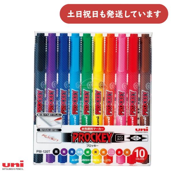 水性顔料マーカー プロッキー10色セット PM150TR10CN 太字+細字ツイン 太字線幅6.0mm細字線幅1.2〜1.8mm 三菱鉛筆 uni PROCKEY PPケース入