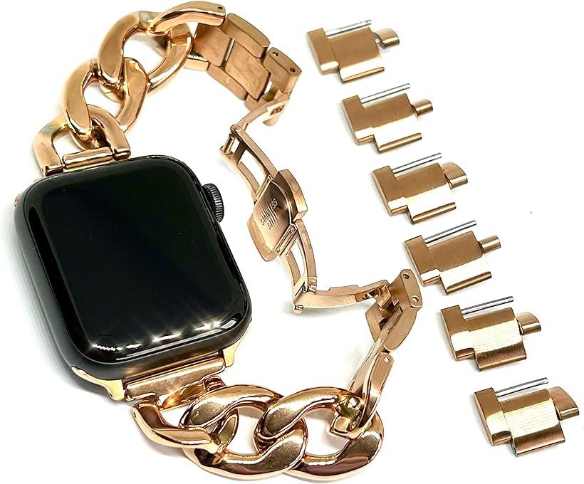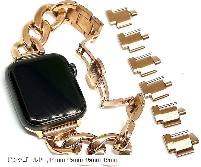 Apple watch チェーンバンド バタフライバックル おしゃれ アップルウォッチ 時計 ステンレス/シルバー レディース メンズ ギフト プレゼント 44mm (ピンクゴールド/ブラック, 44mm 45mm 46mm 49mm)