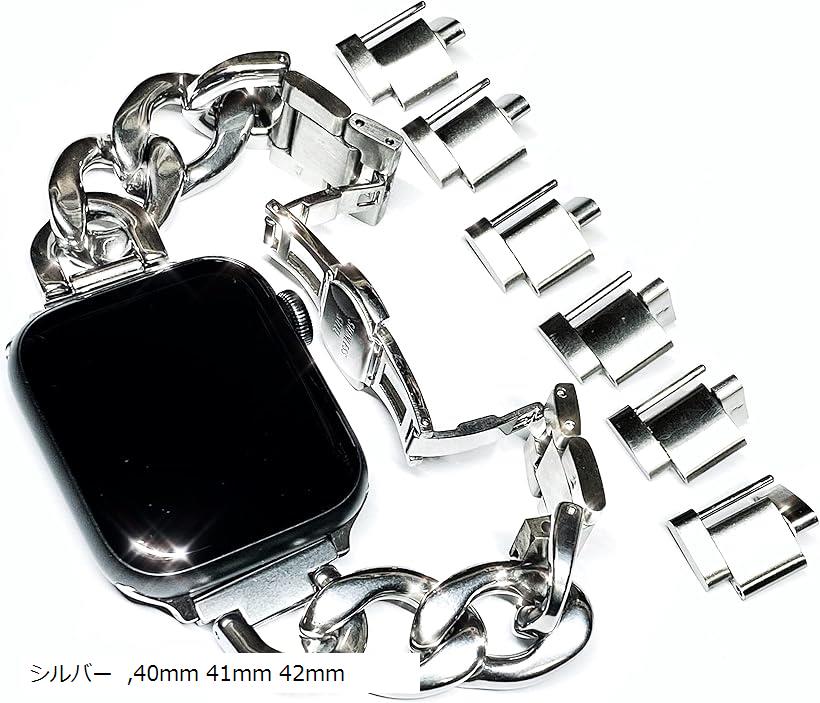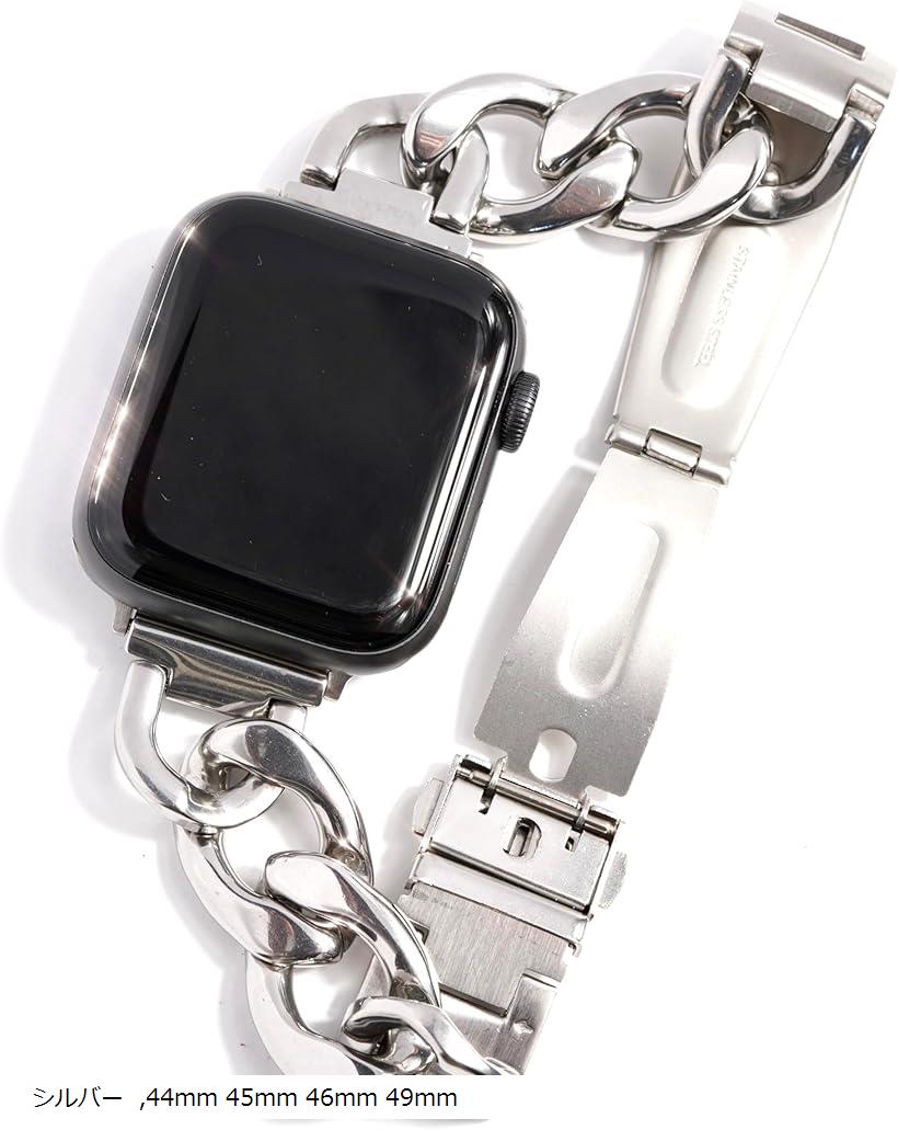 Apple watch チェーンバンド おしゃれ アップルウォッチ 時計 バンドベルト/ステンレス シルバー Series 10 9 8 7 6 5 4 Ultra レディース メンズ ギフト (シルバー, 40mm 41mm 42mm)