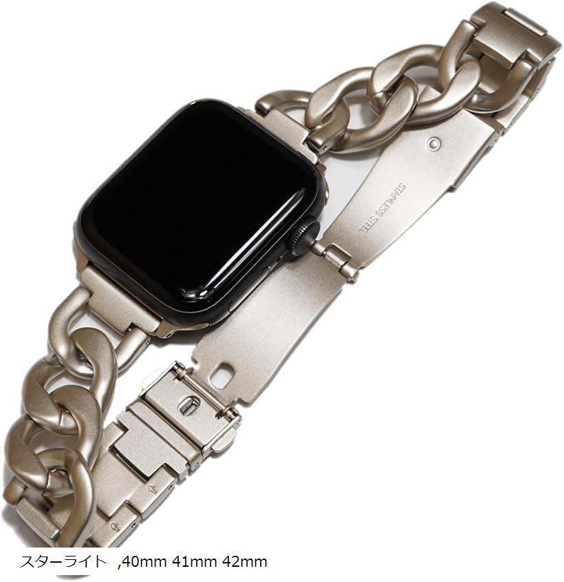 Apple watch チェーンバンド バタフライバックル おしゃれ アップルウォッチ 時計 ステンレス/シルバー レディース メンズ ギフト プレゼント 40mm 41mm 42mm (スターライト, 40mm 41mm 42mm)