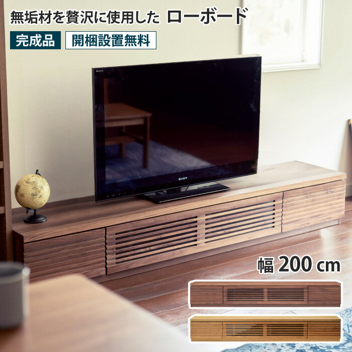 ローボード 幅200cm テレビ台 TV台 TVボード AVボード ウォールナット オーク 低い AVラック AV収納 テレビラック フラップ扉 リモコン操作可能 ガラス扉 引き出し 収納付き おしゃれ シンプル モダン 北欧 ナチュラル 木製 無垢材 天然木 完成品 ルーク ROOK