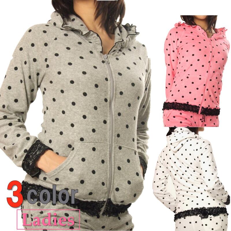 ジップアップパーカー ルームウェア レディースROOMWEAR 長袖トップス CUTEドット柄 【WOMEN:フード付きパーカー】