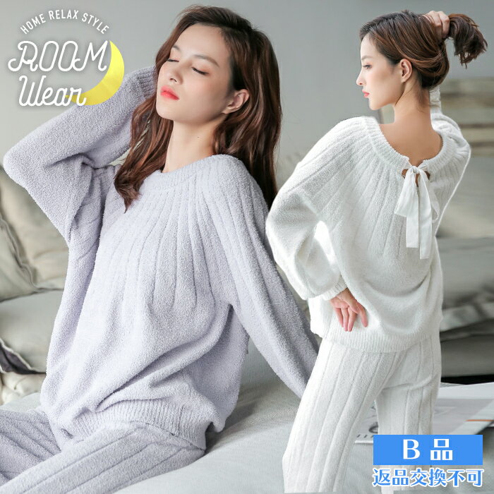 【クーポン利用で1,980円 BLACK FRIDAY】もこもこ ルームウェア 上下セット もこもこ もこもこ 冬 トップス パンツ 部屋着 大きいサイズ FREE あったか パジャマ レディース 可愛い ルームウエア セットアップ パステルカラー ホワイト 白 roomwear 大人 女性 通販