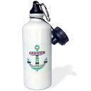 3dRose Blue Ship Wheel on Chevron Waves-Sports Water Bottle, 21oz , 21 oz, Multicolor