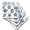 3dRose ブルー シーシェル ノーティカル ビーチ テーマ オーシャン アート - ソフト コースター、4 個セット (CST_155830_1) 3dRose Blue Sea Shells Nautical Beach Theme Ocean Art - Soft Coasters, Set of 4 (CST_155830_1)